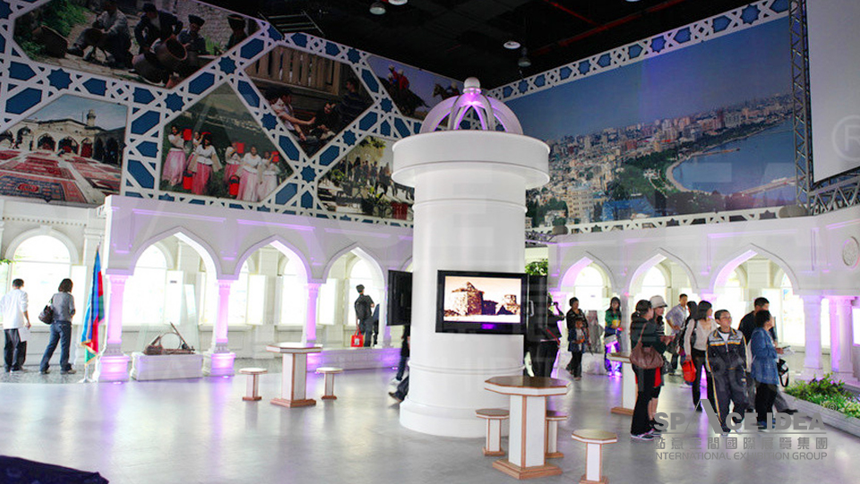 阿塞拜疆是一個具有43個名族的多民族國家,多民族帶給了這個國家多樣的文化,展館以藍色、金色、白色為主色調(diào),富有濃郁的歐亞風情。館內(nèi)以多媒體、特色手工藝品、圖片等展現(xiàn)了阿塞拜疆城鎮(zhèn)的歷史、文化、宗教、城市居民的生活方式等,凸顯了該國地處連接東西方的“十字路口”的重要性,以及在融合東西方文化、促進貿(mào)易和交流中的“橋梁”作用。展館講述了阿塞拜疆城鎮(zhèn)的現(xiàn)狀,揭示了阿塞拜疆民族精神的基礎:與世界各民族合作,尊重各自的歷史、文化和信仰。古阿塞拜疆的領土被視為偉大的絲綢之路的一部分。現(xiàn)今,阿塞拜疆位于東西大陸的交接口。 歐亞大陸地緣政治的版圖(輪廓)依舊穿越阿塞拜疆的領土。東西方之間的價值觀、信息和知識一度都是通過這些歷史路線來傳送的。同時,它們在世界范圍內(nèi)首次促使了科學和文化傳統(tǒng)在絲綢之路國家間的交流。正因為阿塞拜疆位于東西方的十字路口,所以,新千年積極執(zhí)行TRACECA項目使得阿塞拜疆的歷史作用已經(jīng)得到加強。