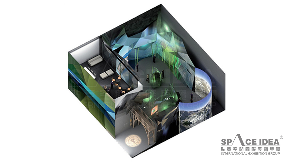 展館概況黑山的自然風光給予了點意空間設計師無限的靈感。外立面由金屬板制成,頗具現代感,抽象的幾何圖形讓人聯想起綿延的群山,配以色彩斑斕的投影,營造出絕佳的視覺效果。展館四周,凹凸起伏的不銹鋼板組成大小不一的投影屏,斑駁的光影從鋼板的縫隙中透出,和屏幕上的風光短片相映成趣。五彩的燈柱變換色澤,在“群山”中豎立。它們象征著黑山的森林資源,寓意人和自然和諧相處。森林、自然公園、沿海城市等展項將全方位展示黑山的無窮魅力。“群山”模擬了黑山著名的洛夫琴山,地面坡度隨著參觀者的前行逐漸變得陡峭。館內還將通過視頻、圖片等手段,模擬海岸名城科托爾的風貌。