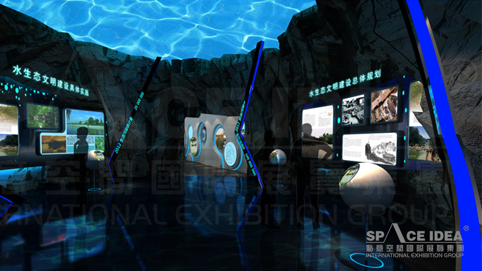 點意空間圍繞“水潤揚州”的主題,打造“水潤揚州展館”。以“水”為元素,以時間軸為線索,縱觀千年,展現人類與水生態的相依相存;從改造到善利到保護,再到適應自然、理解自然、尊重自然的過程,傳遞了“人水和諧”的美好愿景。