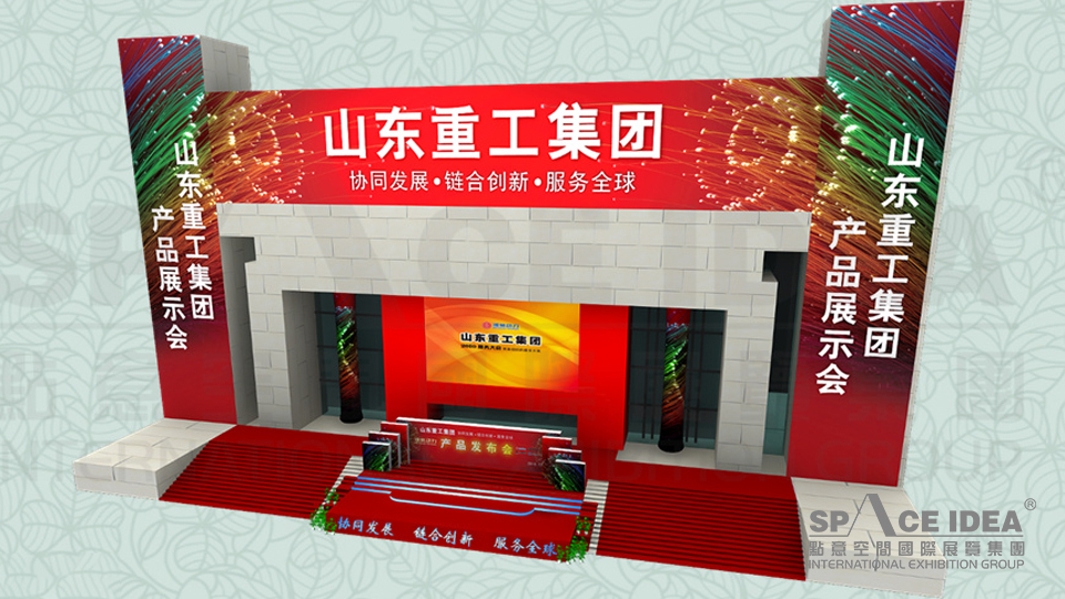 會(huì)場(chǎng)氣氛渲染是除了主展示區(qū)外的區(qū)域。通過(guò)對(duì)會(huì)場(chǎng)內(nèi)外的展示布局,起到宣傳、指示作用。通過(guò)層層引導(dǎo),持續(xù)不斷的視覺(jué)宣傳效果,把本次年會(huì)的氣氛烘托起來(lái),展示出山東重工集團(tuán)的實(shí)力,為本次產(chǎn)品展示會(huì)做好宣傳作用。