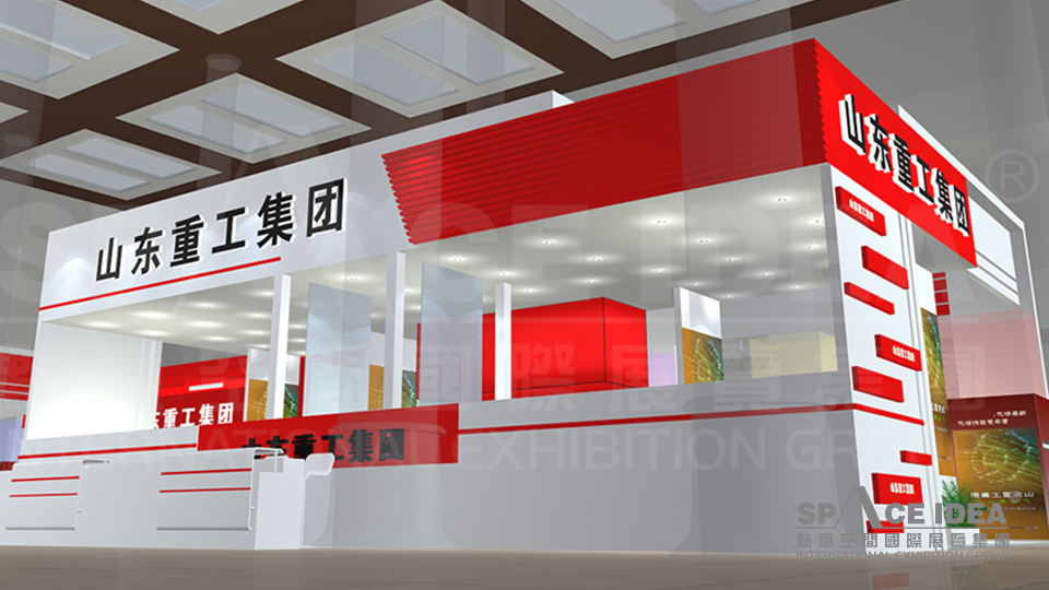 2. 零部件展示區(qū)。處于整個(gè)展區(qū)的中心位置,用發(fā)光的燈箱字,把山東重工的形象拔高,前方留出通透的空間,在第一視角占領(lǐng)視線,并形成整個(gè)展場(chǎng)的焦點(diǎn)。