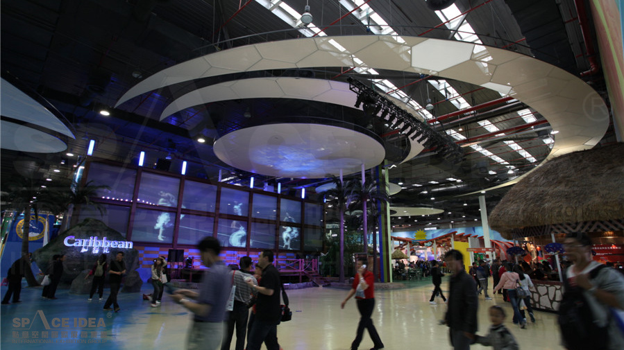 The pavilion features unique natural beauty and economic achievements of the 15 Caricom member states. The museum displays the island scenery of blue water and blue sky in various ways: busy and magnificent modern port, the exquisite straw weaving handicraft, the smiling face like children's sunshine, all are full of strong Caribbean customs. The cultural landscape of the Caribbean shows the audience of Shanghai World Expo the wonderful city life. It is just this exotic feeling that gives designers of Space Idea the inspiration to express Caribbean people's blessing to the world and show the romantic urban life of Caribbean Sea.