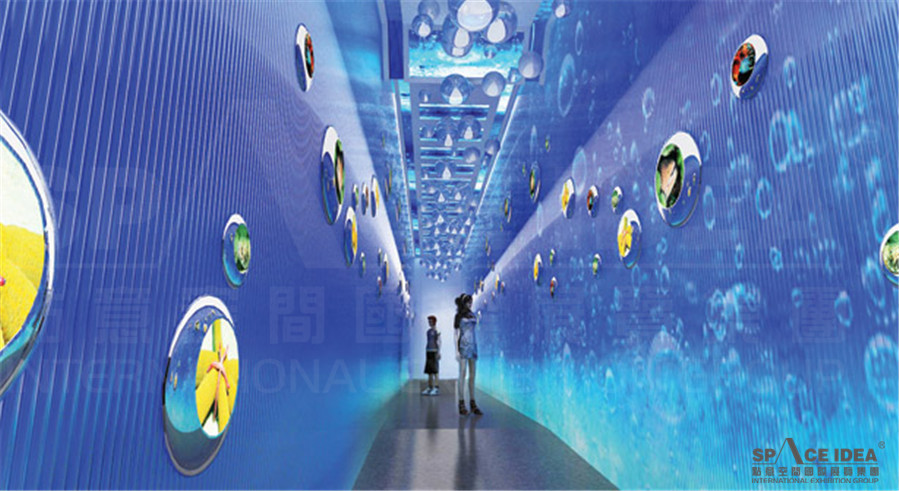 The pavilion is mainly divided into three parts: wave of the sea exhibition area, source of the sea exhibition area and love of the sea exhibition area. Among the three exhibition contents, some functional areas are added: lobby, waiting area, ocean culture corridor, audience photographing area and sales area.
