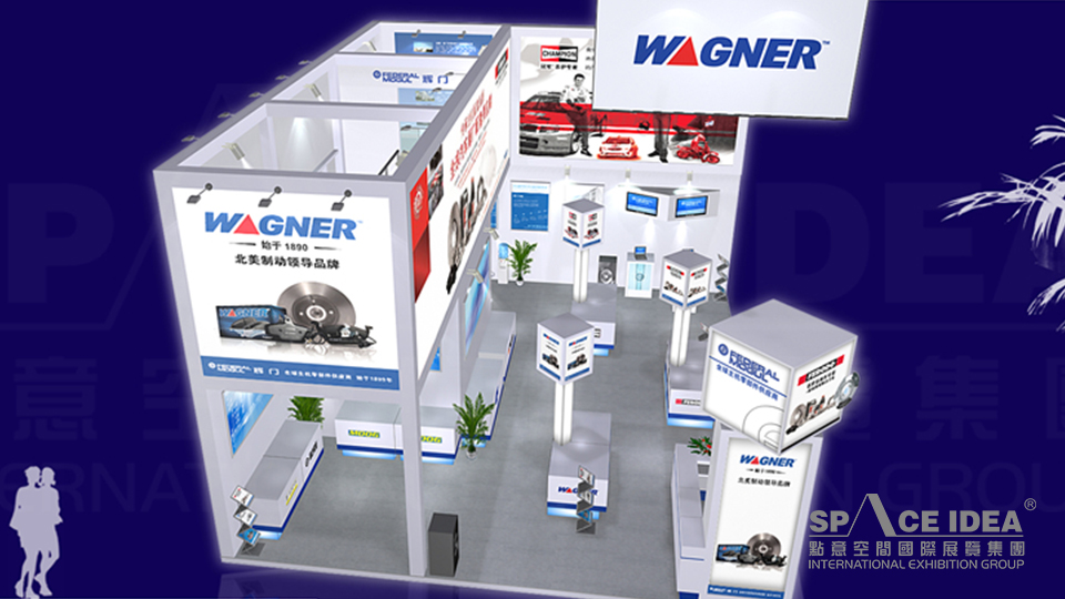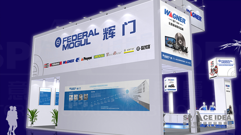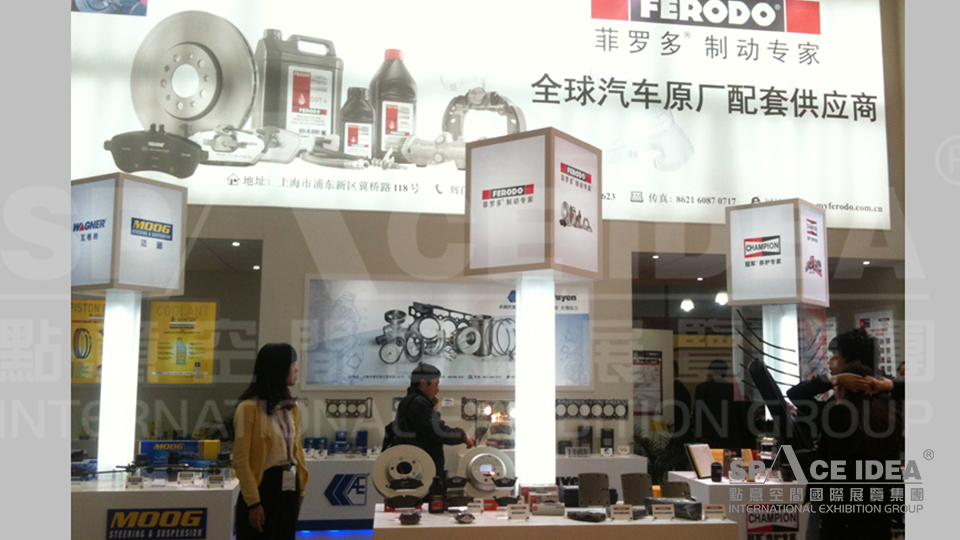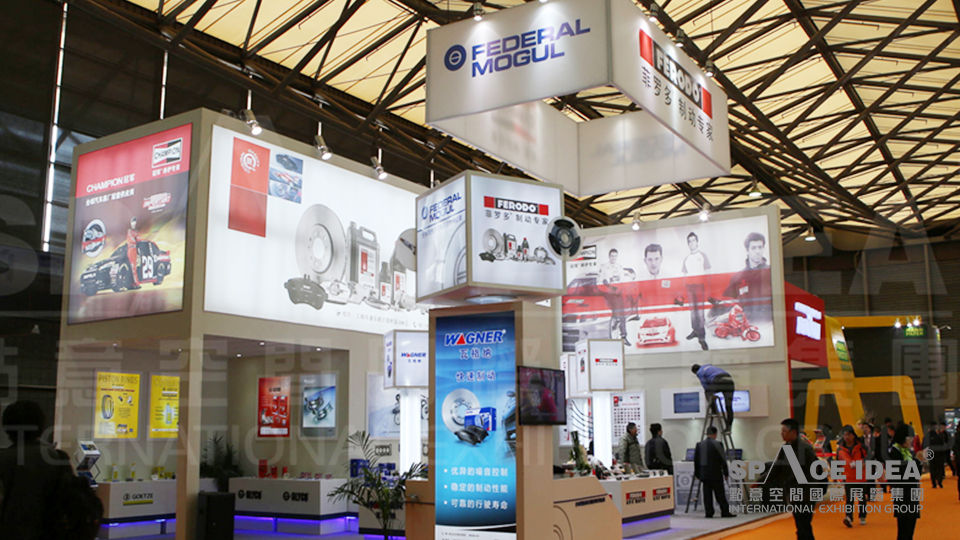 在頂部設置一個LOGO宣傳吊點,進入展館后即可遙望到輝門的展位所在位置。