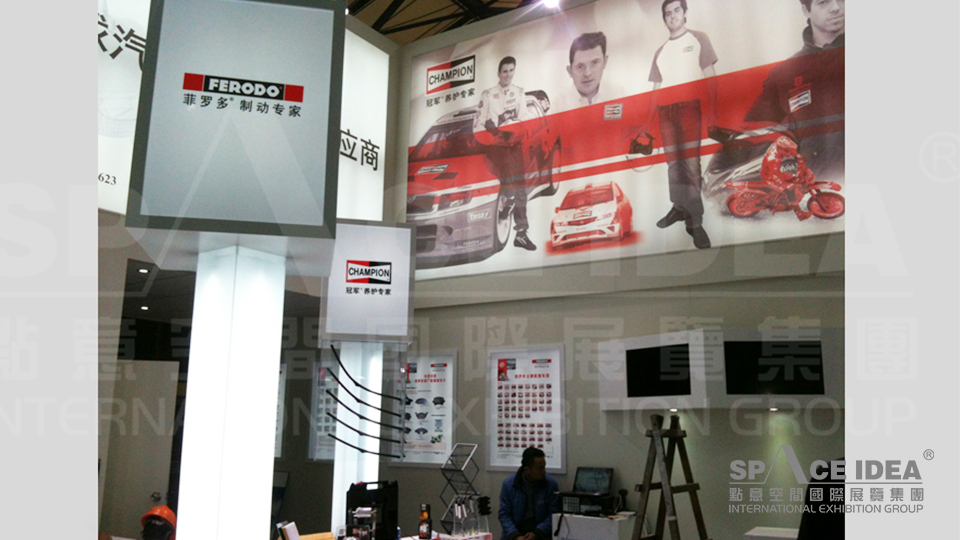 在海報宣傳上,盡可能的利用展位面積進行有效宣傳。上部以大幅企業(yè)宣傳海報為主,下部以產(chǎn)品宣傳海報為主,上下呼應,組合成一個有機的立體宣傳整體系統(tǒng)。