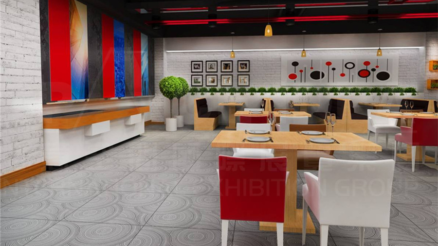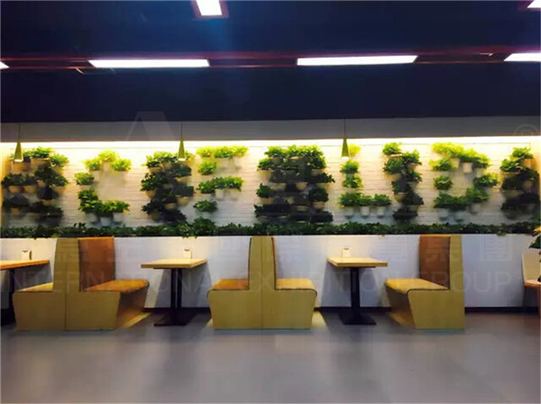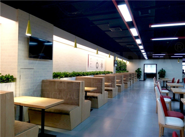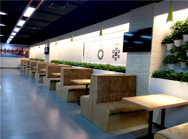 The design scheme is mainly based on the above four design elements, mainly on ornament and local decoration, but on large area, mainly on white brick grain, with original ecological wood as decorative materials. Create and present a smart modern, concise dining space. Let the eater know our corporate culture in the first time; create a bright and cheerful dining environment.