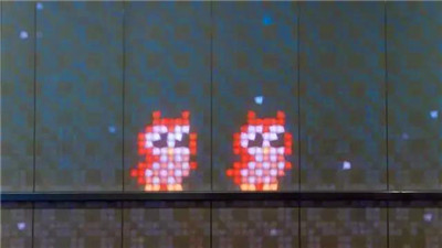 這面墻包含了12塊木板覆蓋的LED面板和三塊亞克力面板,因為其中內置了ENESS編寫的LUMIS系統,所以LED陣列可以顯示圖像和相對復雜的動畫,就像這面墻突然有了生命一般。