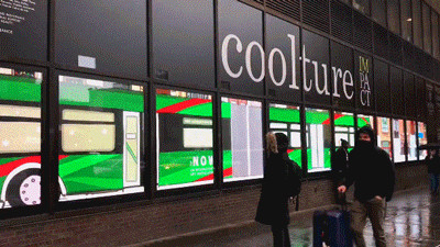 在紐約時代廣場港口管理局巴士總站的窗戶上,神奇的影像畫面與過往的游客互動不停。走進這里,仿佛進入了一個魔法世界,虛實真假融為一體,開啟一場奇幻影視旅程。